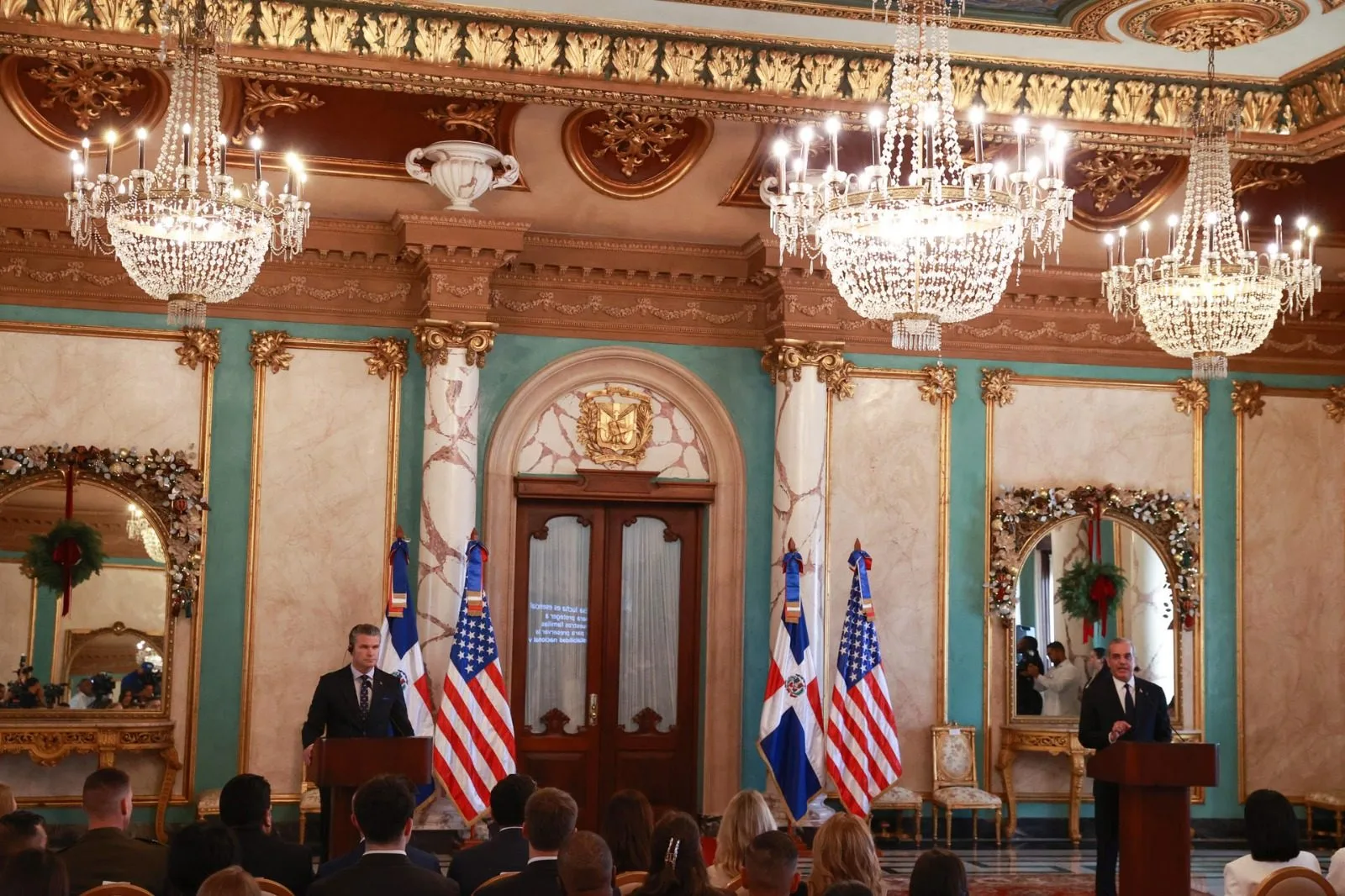 Los aeropuertos Internacional de las Américas y el militar de San Isidro, ambos en la provincia de Santo Domingo, destinarán áreas para el transporte de equipo y personal técnico como parte de las operaciones de Washington en el Caribe, afirmó Abinader en presencia de Hegseth, el primer secretario de Guerra estadounidense en realizar una visita oficial al país.