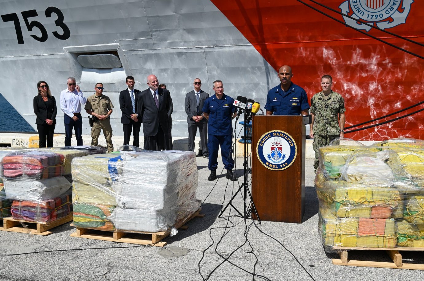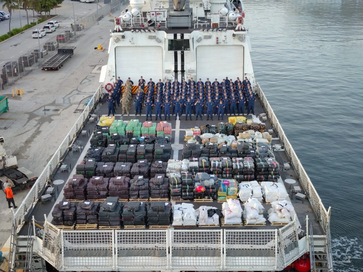 CompartirLa Guardia Costera de los Estados Unidos logró un hito histórico con la descarga de 76,140 libras de narcóticos ilícitos, valorados en $473 millones, marcando la mayor cantidad de drogas descargadas en la historia de la Guardia Costera, en Port Everglades, el lunes. La tripulación del Guardacostas Hamilton descargó aproximadamente 61,740 libras de cocaína y aproximadamente 14,400 libras de marihuana. Esta descarga combinada de narcóticos ilegales impidió que el flujo marítimo de aproximadamente 23 millones de dosis potencialmente letales llegara a los Estados Unidos. «La Guardia Costera de los EE. UU., en asociación con nuestros socios federales, del Departamento de Defensa e internacionales, están descargando 61,740 libras de cocaína, y esto representa una victoria significativa en la lucha contra las organizaciones criminales transnacionales, destacando nuestro compromiso inquebrantable de salvaguardar a la nación del tráfico ilícito y sus impactos devastadores», dijo el Contralmirante Adam Chamie, comandante del Distrito Sureste de la Guardia Costera. «Para poner esto en perspectiva, los 23 millones de dosis letales potenciales de cocaína incautadas por la Guardia Costera de los Estados Unidos y nuestros socios, son suficientes para sobredosificar fatalmente a toda la población del estado de Florida, lo que subraya la inmensa amenaza que representa el tráfico transnacional de drogas para nuestra nación». El contrabando incautado fue el resultado de 19 interdicciones en aguas internacionales del Océano Pacífico Oriental y el Mar Caribe. La Guardia Costera de Estados Unidos realizó la mayor descarga de drogas de la historia en Port Everglades. Foto: @USCGSoutheast / X El 26 de junio, un avión de patrulla marítima detectó dos embarcaciones rápidas sospechosas aproximadamente a 115 millas al sureste de las Islas Galápagos, Ecuador. La tripulación del Escuadrón Táctico de Interdicción de Helicópteros embarcada de Hamilton empleó tácticas de uso de la fuerza aerotransportada, lo que resultó en que el equipo de abordaje de Hamilton interceptara ambos buques, incautando más de 8,800 libras de cocaína. El 27 de junio, un avión de patrulla marítima detectó una embarcación rápida sospechosa aproximadamente a 125 millas al sureste de las Islas Galápagos, Ecuador. La tripulación aérea embarcada de HITRON de Hamilton empleó tácticas de uso de la fuerza aerotransportada que permitieron al equipo de abordaje de Hamilton interceptar el barco, incautando más de 4,330 libras de cocaína. El 30 de junio, un avión de patrulla marítima detectó una embarcación rápida sospechosa aproximadamente a 87 millas al norte de Bonaire. Una tripulación del Destacamento 408 de la Guardia Costera desplegada en el USS Cole interceptó la embarcación e incautó aproximadamente 2,425 libras de cocaína. El 3 de julio, un avión de patrulla marítima detectó una embarcación rápida sospechosa aproximadamente a 15 millas al norte de Aragua, Venezuela. Una tripulación del LEDET 404 desplegada en el buque HNLMS Friesland de la Marina Real de los Países Bajos interceptó el buque, incautando más de 5.450 libras de cocaína. El 11 de julio, un avión de patrulla marítima detectó una embarcación rápida sospechosa aproximadamente a 17 millas al noreste de Silva, Venezuela. La tripulación aérea embarcada de HITRON de Friesland empleó tácticas de uso de la fuerza en el aire, y un equipo de abordaje LEDET 404 embarcado interceptó el buque, incautando 9,088 libras de marihuana. El 21 de julio, la tripulación del sistema de aeronaves no tripuladas embarcada de Hamilton detectó una embarcación rápida sospechosa aproximadamente a 600 millas al sur de Acapulco, México. La tripulación aérea de HITRON embarcada de Hamilton empleó tácticas de uso de la fuerza aerotransportada, y el equipo de abordaje de Hamilton interceptó el barco, incautando más de 3,395 libras de cocaína. El 23 de julio, la tripulación de Hamilton detectó y abordó una embarcación rápida sospechosa aproximadamente a 88 millas al sureste de la isla Socorro, México. La tripulación del HITRON embarcado de Hamilton empleó tácticas de uso de la fuerza en el aire, y el equipo de abordaje de Hamilton interceptó el barco, incautando más de 9,160 libras de cocaína. El 25 de julio, un avión de patrulla marítima notificó a la tripulación del Guardacostas Vigilant de una embarcación rápida sospechosa aproximadamente a 180 millas al sur de la República Dominicana. El equipo de abordaje de Vigilant interceptó la embarcación e incautó más de 1,410 libras de cocaína y 80 libras de marihuana. La Guardia Costera de Estados Unidos realizó la mayor descarga de drogas de la historia en Port Everglades. Foto: @USCGSoutheast / X El 2 de agosto, un avión de patrulla marítima detectó una embarcación rápida sospechosa aproximadamente a 52 millas al norte de Carabobo, Venezuela. La tripulación aérea embarcada de HITRON de Friesland empleó tácticas de uso de la fuerza en el aire, y un equipo de abordaje LEDET 404 embarcado interceptó el buque, incautando 2,615 libras de marihuana. El 2 de agosto, un avión de patrulla marítima detectó una embarcación rápida sospechosa aproximadamente a 640 millas al sur de Acapulco, México. La tripulación aérea embarcada de HITRON de Hamilton empleó tácticas de uso de la fuerza en el aire, y el equipo de abordaje de Hamilton interceptó la embarcación, incautando más de 4,110 libras de cocaína. El 5 de agosto, la tripulación embarcada de UAS de Hamilton detectó una embarcación rápida sospechosa aproximadamente a 543 millas al sureste de la isla Clipperton. La tripulación aérea embarcada de HITRON de Hamilton empleó tácticas de uso de la fuerza aerotransportada, y el equipo de abordaje de Hamilton interceptó la embarcación, incautando más de 4,210 libras de cocaína. El 6 de agosto, la tripulación embarcada de UAS de