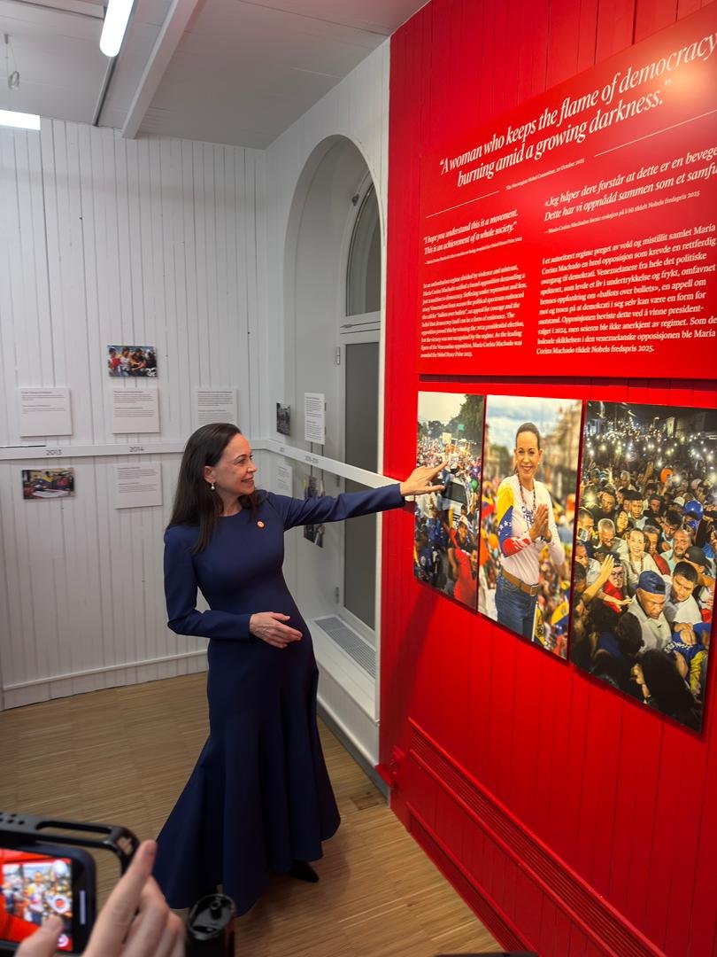 CompartirMaría Corina Machado se mostró «orgullosa» este jueves 11 de diciembre, de pertenecer a un movimiento de ciudadanos «valientes», al inaugurar una exposición dedicada a su persona en el Centro del Nobel de la Paz con motivo de la concesión de ese premio a la opositora venezolana, el último acto del programa del galardón de este año. «Estoy tan orgullosa de ser parte de una generación, de un movimiento de ciudadanos valientes, corajosos, honestos y afectuosos», dijo en su discurso Machado, que prometió que la próxima vez que se encontrará con el Comité Nobel noruego será en una Venezuela «libre». La muestra, bautizada «Democracy on the Brink» (La democracia, en el precipicio) es un reflejo de «la lucha por la democracia» de la oposición venezolana, según este centro vinculado al Instituto Nobel, y acoge tanto imágenes de su trayectoria política como de jóvenes venezolanos emigrados a Colombia. La importancia del apoyo exterior En declaraciones a los medios, Machado destacó la importancia del apoyo exterior para la oposición venezolana, pero añadió que «la ayuda más importante va a ser la de nuestra diáspora regresando». «No hubiéramos llegado hasta aquí si no fuera porque siempre estuvo el poder de la gente en el centro y el haber confiado en la gente al mismo tiempo», declaró a los medios Machado, quien manifestó tener «confianza» en los venezolanos y reiteró que esta generación «está más preparada que ninguna otra». La líder de Vente Venezuela, quien estuvo acompañada por su familia, aseguró sentirse «muy emocionada» por el trabajo hecho por los expositores y por algunas de sus imágenes, como la tomada poco después de las elecciones primarias de 2023. El Centro del Nobel de la Paz organiza cada año una muestra en honor al galardonado o galardonados. La práctica habitual es contratar a un fotógrafo del país del galardonado, aunque este año la organización ha optado por una solución alternativa, debido a la situación política de Venezuela. El Centro del Nobel de la Paz contrató en esta ocasión al turco Emin Özmen, prestigioso fotógrafo de la agencia Magnum, quien ya había viajado a Venezuela en 2019 para documentar las protestas contra el Gobierno, que sirvieron como material para una parte de la muestra. «Esperanzas y visiones de futuro» Özmen viajó a Colombia el mes pasado por encargo del Centro del Nobel de la Paz para retratar a jóvenes venezolanos emigrados al país vecino y recoger «sus esperanzas y visiones de futuro». Según el Comité Noruego del Nobel y el propio centro, «más de 8 millones de personas, es decir, una cuarta parte de la población, han huido de Venezuela desde 2014» y «quienes permanecen viven en la pobreza y el miedo, mientras extrañan a sus familiares exiliados». Las fotos de varios de esos jóvenes decoran otra parte de la muestra, mientras de fondo se escuchan sus relatos, entremezclados con un discurso de la propia Machado sobre democracia. Foto: X/@ConVzlaComando La inauguración se produjo menos de 24 horas después de la llegada a Oslo de Machado, que reside en la clandestinidad en Venezuela y no pudo llegar a tiempo ni a la rueda de prensa del martes ni ayer a la ceremonia de entrega del premio, que recogió en su nombre su hija, Ana Corina Sosa. Durante una comparecencia este jueves ante los medios, Machado agradeció el apoyo de Estados Unidos tanto en su salida de Venezuela como contra el «régimen» de Nicolás Maduro y pidió ayuda a las «democracias del mundo» para bloquear los ingresos que permiten al mandatario mantener su estructura. Se mostró tan combativa contra Maduro como convencida de que conseguirán «liberar» al país y calificó de «decisivas» las acciones del presidente estadounidense, Donald Trump, en el Caribe, que han dejado al régimen «más débil que nunca». Sin embargo, no quiso especular sobre la estrategia de Washington y otros países en la defensa de su seguridad nacional, en la que dijo que están involucrados. EFE A petición de nuestra audiencia todos los anuncios publicitarios fueron removidos Navegación de entradas Subsecretario de Estado de EEUU felicita a María Corina Machado por el Premio Nobel de la Paz (VIDEO) ¿Tropas de EEUU en Venezuela? La respuesta de la Casa Blanca ante informes de una posible guerra prolongada