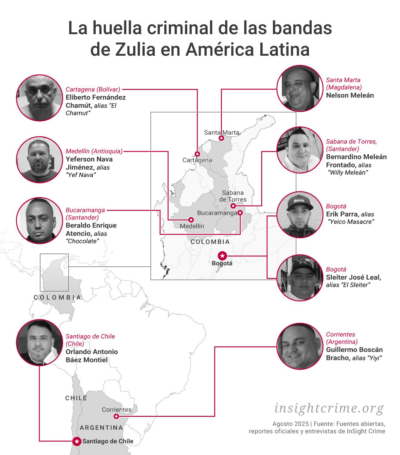 CompartirLejos de los titulares de prensa y los discursos políticos acaparados por el Tren de Aragua, otros grupos criminales de Venezuela también han expandido sus operaciones en América Latina, dejando una huella silenciosa, pero no menos violenta. Por Insight Crime Una ola de arrestos y homicidios de varios criminales originarios del estado venezolano de Zulia, en países como Colombia, Argentina y Chile, ha puesto al descubierto un aspecto diferente y no reconocido del alcance transnacional del crimen organizado venezolano. El caso más reciente es el de Yeferson Nava Jiménez, alias “Yef Nava”, capturado a finales de mayo en un exclusivo barrio de Medellín, Colombia. Sobre él pesaba una notificación roja de Interpol y era uno de los criminales más buscados de Venezuela, señalado como líder principal de los Meleán, uno de los clanes criminales más antiguos y poderosos de Zulia, integrado por más de 600 miembros, según reportes oficiales. “Nava es requerido por la justicia del vecino país por los delitos de secuestro, homicidio y extorsión, estuvo preso en Estados Unidos en 2022 y habría arribado a Medellín para realizar alianzas con actores criminales de la región”, publicó en X, el director de la policía de Colombia, el general Carlos Fernando Triana. Después de someterse a varias cirugías estéticas para alterar su identidad, Nava había instalado una base de operaciones en Medellín para coordinar extorsiones y expandir la red criminal hacia otras regiones de Colombia. No obstante, esta no fue la primera y única vez que los Meleán y otros criminales zulianos pusieron un pie en suelo colombiano y otros países del continente. Buscando un refugio Antes de que el Tren de Aragua y sus diferentes facciones instalaran sus operaciones en diferentes rincones de América Latina y ocuparan las principales portadas de los medios de varios países, algunas de las bandas zulianas ya habían dejado su rastro criminal en la región. Los primeros que asomaron la cabeza por fuera de Venezuela con antecedentes penales fueron los Meleán. En la noche del 24 de marzo de 2012, una pareja de sicarios acabó con la vida de Nelsón Meleán mientras estaba con su familia en un centro comercial en la ciudad de Santa Marta, ubicada en el Caribe colombiano. Aunque varios medios de comunicación lo presentaron como un reconocido empresario zuliano, la realidad era otra. Nelsón era el hermano menor de Antonio Meleán, alias “Antonito”, la cabeza de un clan mafioso que controlaba los hilos criminales de las extorsiones, el robo de vehículos y secuestros en la costa oriental del lago de Maracaibo, Zulia, y que fue asesinado en 2008 mientras estaba en una barbería. Después de la muerte de Antonito, los niveles de violencia criminal aumentaron drásticamente en Zulia, con múltiples homicidios, ataques armados y atentados con explosivos contra varios miembros y familiares de esta organización. La presencia de Nelsón Meleán y de varios integrantes de su clan familiar en Colombia estuvo motivada en un principio por la búsqueda de refugio. Pero esto no fue suficiente para escapar de la violencia que azotaba Zulia, pues varios de los enfrentamientos entre facciones rivales cruzaron la frontera. Uno de los protagonistas de la violencia exportada a Colombia, fue Hely Heberto Fernández, alias “El Chamut”, un expolicía que fungió como lugarteniente de los Meleán y ocupó un puesto entre los 10 criminales más buscados de Zulia. El Chamut fue capturado en Colombia en febrero de 2018 luego de quedar herido producto de un intercambio de disparos con otra organización criminal en Cartagena, Colombia. Meses después, cuando se encontraba recuperándose en un hospital en Barranquilla custodiado por la Policía, logró escapar y huyó a su país natal. De acuerdo con los reportes oficiales, el Chamut usaba una identificación falsa para despistar a las autoridades y estaba buscando alianzas con criminales de la costa Caribe colombiana. Al año siguiente, el Chamut terminaría asesinado en Venezuela luego de enfrentarse con las fuerzas de seguridad locales. Otro de los enfrentamientos que se trasladó de Zulia a Colombia y que ganó relevancia mediática fue el de “Yeico Masacre” contra “Sleiter”. Erick Alberto Parra Mendoza, alias “Yeico Masacre” era exintegrante de la Guardia Nacional Bolivariana (GNB) y sicario al servicio del clan Meleán y Sleiter José Leal, alias “Sleiter”, un antiguo líder carcelario, localmente conocido como “Pran”, del Retén de Cabimas, Zulia, quien operó bajo la sombra de los Meleán. Ambos se trasladaron a Colombia en un intento por proteger a sus familias de la violencia desatada en Zulia y asumir el control de las extorsiones en varias ciudades. Sin embargo, la guerra que llevaron consigo también alcanzó a sus seres cercanos, y durante el huracán de violencia que se desató en varias ciudades de Colombia, cayeron familiares cercanos de Yeico Masacre y, finalmente, el propio Sleiter, quien fue asesinado en 2020 en un ataque armado en Bogotá. Para este mismo año, al menos 30 homicidios en territorio colombiano estaban vinculados a esta disputa. Tras esa confrontación, los subordinados de Yeico Masacre continuaron operando en Bogotá y otras ciudades de la Costa Caribe. Sin embargo, la persecución estatal derivada de la rivalidad con los Meleán impidió que el grupo se consolidara, y su perfil criminal fue perdiendo relevancia con el tiempo. Nuevas oportunidades criminales Ante la falta de oportunidades criminales en Venezuela, causadas por una profunda crisis económica y la reducción de la capacidad de pago de los ciudadanos, varios grupos criminales se vieron forzados a migrar en busca de nuevas fuentes de ingresos ilícitos para mantener sus operaciones. Zulia, que históricamente ha sido un núcleo del crimen organizado en Venezuela, no fue la excepción. “El principal factor de salida del país es la pérdida d