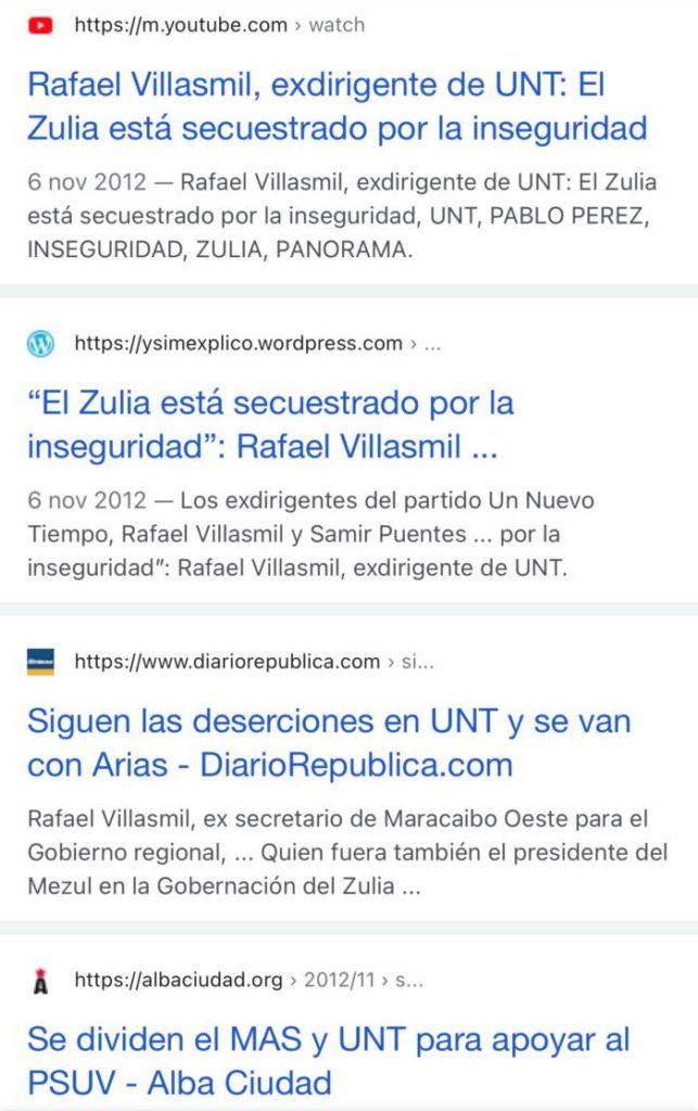 CompartirRafael Villasmil está casado o tendría una relación con Andrea Bracho, hija del ganadero zuliano Luis Bracho, mismo que se ha dedicado en Venezuela a comprar fincas ganaderas en Apure y otros estados limítrofes con Colombia, con el apoyo de grupos armados y conexiones en el poder. Fincas como el Hato Merecure en Apure, en donde recientemente la Armada venezolana halló un narcosubmarino. Rafael Villasmil militó en Venezuela en el partido opositor Voluntad Popular (VP), siendo dirigente juvenil. Desde joven ha estado muy cerca de la política y el poder. De VP, saltó al también opositor partido Un Nuevo Tiempo (UNT), junto a los exgobernadores zulianos Manuel Rosales y Pablo Pérez. Posteriormente Villasmil dejó de simpatizar con UNT y luego de pronunciarse en contra de los dirigentes de la tolda, se unió al chavismo, con el propósito de apoyar en su campaña a la gobernación del estado Zulia al entonces candidato Francisco Arias Cárdenas, quien una vez electo, designó a Villasmil, como presidente del Programa de Alimentación Escolar (PAE) en la misma entidad. Algunos datos sobre la labor de Villasmil en el PAE permiten inferir que pudo ser su propio suegro quien vendiera carne y otros insumos alimenticios al programa escolar que el converso político dirigía. En 2017 circuló un vídeo en las redes sociales en el que aparecía el exdirigente de UNT en el estado Zulia, Rafael Villasmil, quien era mano derecha del entonces gobernador chavista de ese mismo estado, Francisco Arias Cárdenas, riéndose a carcajadas y afirmando: ¡Camaradas, estoy muy estresado, estoy muy estresado…! https://www.abcnoticias.net/wp-content/uploads/2022/05/политик-громко-смеется.mp4 Algunos en las redes sociales aseguraron que Villasmil pudo haber estado bajo los efectos de algún tipo de sustancia, mientras se grababa en el vídeo. Hoy por hoy Villasmil se mantiene de perfil muy bajo en las redes sociales, algo apartado de la política y más dedicado a la actividad agropecuaria, con su Agropecuaria Villasmil CA. Se escucha, que formando parte del entramado de negocios de su suegro. En 2010, con motivo del aniversario número 481 de Maracaibo, el entonces coordinador del movimiento político y social Voluntad Popular en Maracaibo, Rafael Villasmil, felicitó y envió un mensaje de esperanza y optimismo a la ciudad del Sol Amada. Villasmil expresó que querían resaltar “a una ciudad que nos ha dado tanto, que tenemos sembrada en el corazón”. “Los buenos ciudadanos siempre tienen presente a la ciudad en sus actitudes –no sólo el día de hoy- sino los 365 días del año”, manifestó Villasmil confiado de que va a llegar el momento en que Maracaibo retomará su gran rumbo. Villasmil recordó que cuando Maracaibo surgió “no había ni alcaldes ni gobernadores sino que lo hizo con sus propios empresarios, con sus comerciantes, con sus zonas populares, con sus buhoneros, con su gaita, con su folklore, con su cultura Después de esos grandes pasos apareció la descentralización, los alcaldes y gobernadores”. Cambio de bando En 2012, los exdirigentes del partido Un Nuevo Tiempo, Rafael Villasmil y Samir Puentes, explicaron sus razones para abandonar el partido y anunciar su respaldo a la candidatura de Francisco Arias Cárdenas a la gobernación del Zulia, durante su intervención en el espacio Dando y Dando del canal del Estado venezolano, Venezolana de Televisión. “El Zulia está secuestrado por la inseguridad”, afirmó Villasmil, tras recalcar que el gobernador Pablo Pérez tenía cuatro años manifestando sus intenciones de ayudar en el tema de la seguridad, pero sin resultados. “No podemos seguir rompiendo ese vaso comunicacional con el Zulia con el gobierno nacional. Para que definitivamente los zulianos podamos formar parte de esos tres niveles de gobierno para beneficio de los zulianos. Por ejemplo con el Mercosur, aquí hay muchos productos y el Zulia puede entrar en esa cadena internacional de comercialización, pero para eso necesitamos un gobernador que se siente con el Presidente”, recalcó Villasmil. “Hago un llamado a reflexión a aquellas personas que saben que estamos atravesando por un grave problema, especialmente en seguridad”, expresó al reiterar sus cuestionamientos a la falta de estrategias por parte del Ejecutivo regional para atender el problema de la inseguridad. “Los resultados electorales del 7 de octubre, es la primera vez que Chávez da una paliza en el Zulia, ese fue el primer termómetro clarito de cómo el zuliano evaluó la gestión del gobernador Pablo Pérez. Estamos convencidos que mucha gente que se identificaba con la oposición asume la realidad y el compromiso de un gobernador eficiente y que se entienda tanto con el gobierno nacional que con el resto de los 21 alcaldes del Zulia”, subrayó. Rafael Villasmil, exsecretario de Maracaibo Oeste para el Gobierno regional del estado Zulia, decidió en 2012 abandonar el partido Un Nuevo Tiempo donde otrora flanqueaba a Manuel Rosales y posteriormente a Pablo Pérez. Su decisión la puso de manifiesto en rueda de prensa y aseguró que no había marcha a atrás. Y dijo que Pablo Pérez no pudo con la responsabilidad del Estado. «Duele que en el Zulia no haya gestión», aseguró. Quien fuera también el presidente del Mezul en la Gobernación del Zulia señaló que confiaba en un cambió de Gobierno a favor del Psuv y apuntó que confiaba en los alcances que puede tener el estado en manos del socialismo. Anunció que fundaría una organización llamada Todos por el Zulia. En 2013, ya como presidente del Programa de Alimentación Escolar Zuliano (PAEZ), Rafael Villasmil consignó pruebas ante el Ministerio Público en la ciudad de Maracaibo , en donde denunció que en el PAEZ se cocinaba una presunta «olla podrida», que involucraba la malversación de fondos. Rafael Villasmil es, al parecer, familiar de la abogada y presidenta del Consejo Legislativo del e