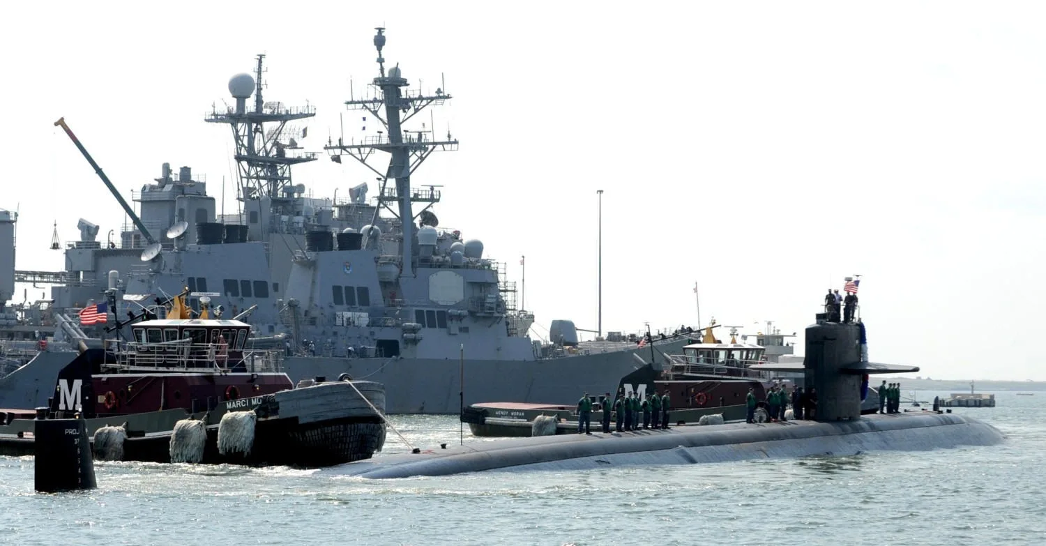 Por su parte, el USS Newport News (SSN-750) es un submarino de ataque diseñado para operaciones encubiertas. Equipado con 12 celdas VLS para misiles Tomahawk, puede realizar ataques precisos contra objetivos terrestres o marítimos. Sus cuatro tubos lanzatorpedos de 533 mm permiten el uso de torpedos Mk 48 ADCAP, efectivos contra submarinos y buques de superficie. También tiene capacidad para desplegar minas navales, como la Mk 60 Captor, y realizar misiones de inteligencia y apoyo a fuerzas especiales, gracias a su diseño sigiloso y sistemas avanzados de contramedidas electrónicas.
